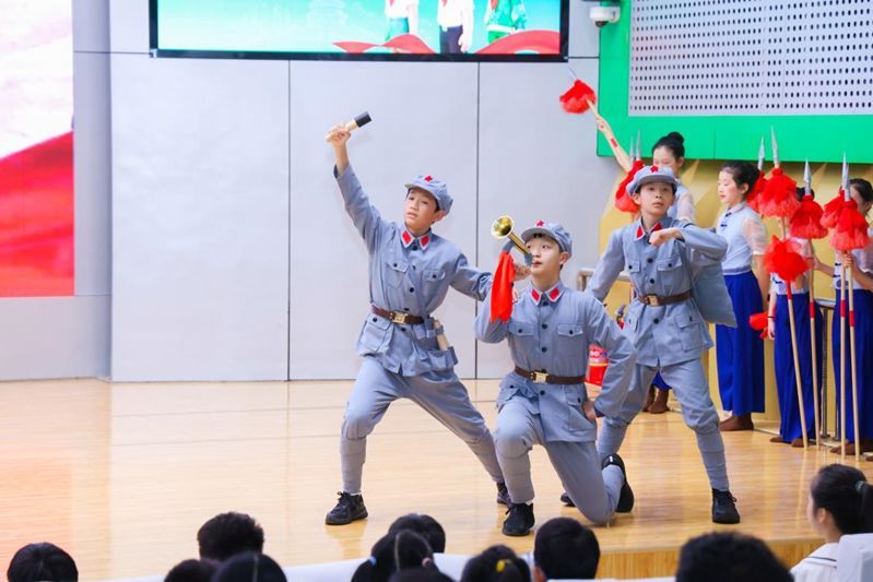 活动在嘹亮的队歌声中开始。学校大队总辅导员刘茜作少先队工作报告,并呼吁队员们:“让我们继续高举队旗跟党走,让红领巾在新时代的阳光下更加鲜艳!”现场,队员们展示的《映山红》舞蹈鲜活而激昂,《七律·长征》《忆秦娥·娄山关》等经典诗朗诵热情而铿锵,红色血脉在童声中传承。