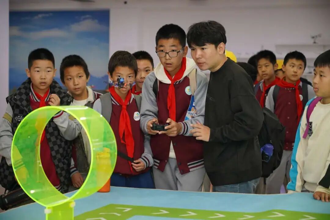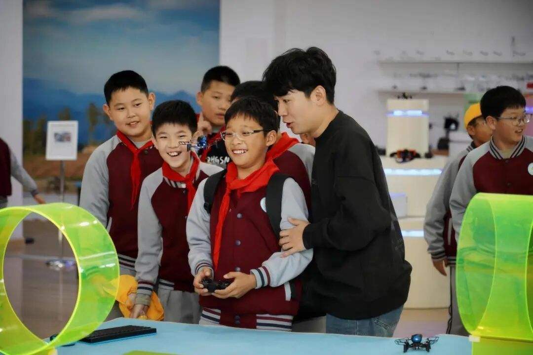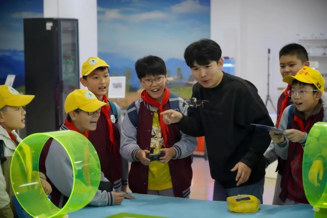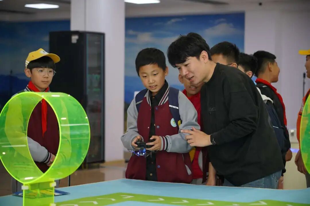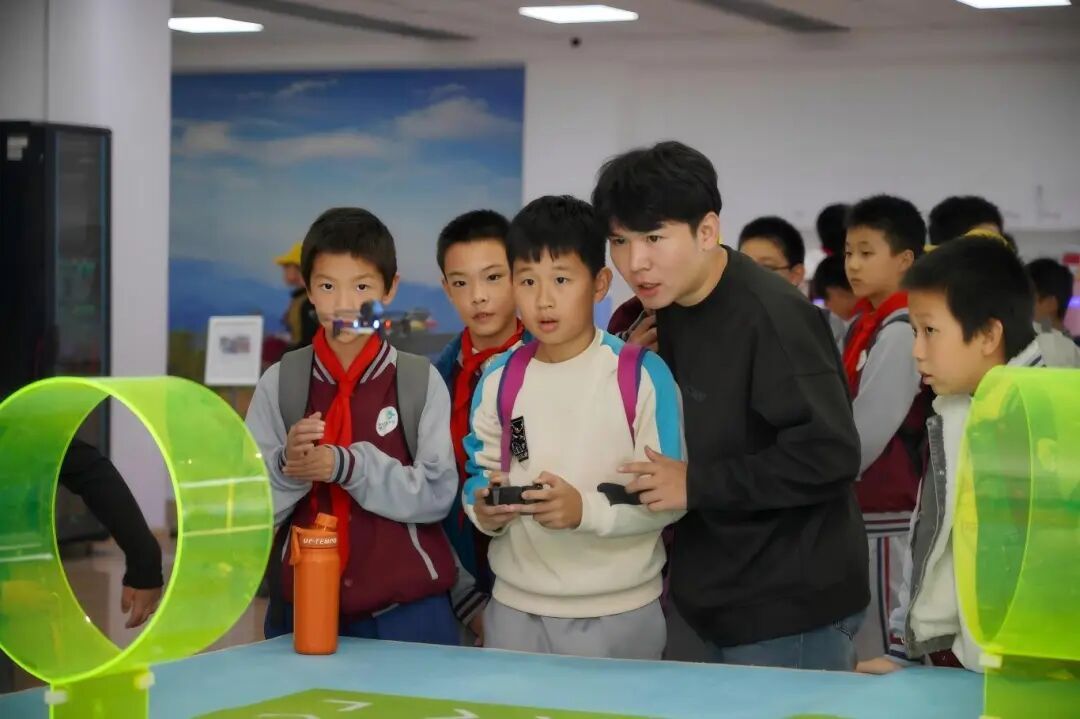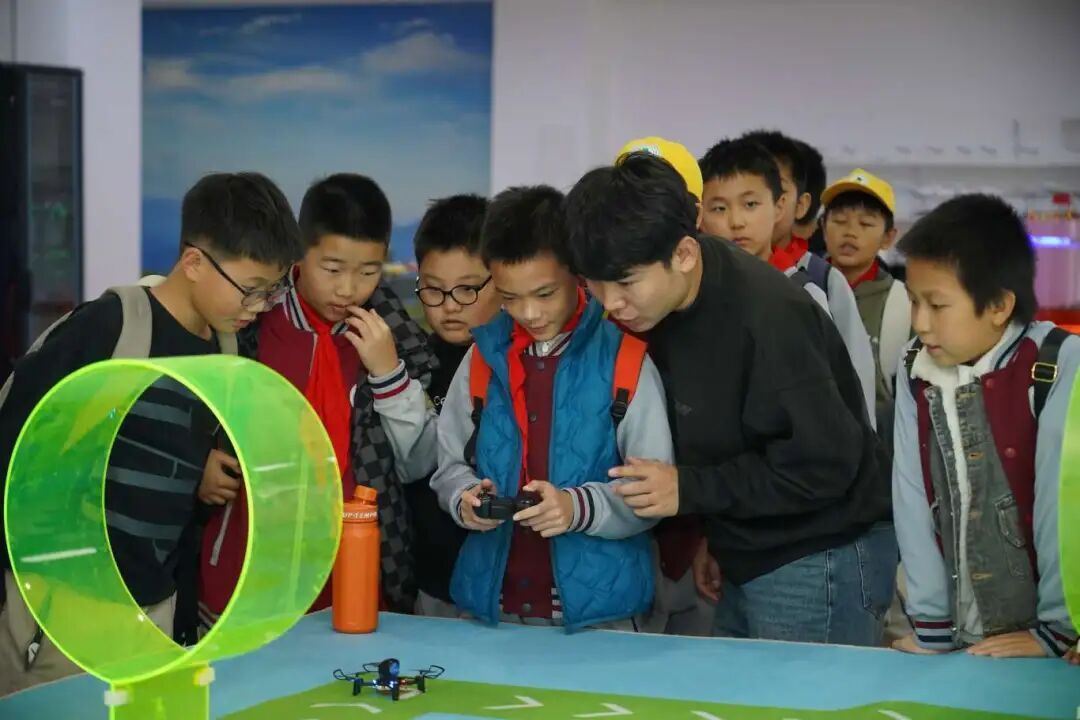 活动在无人机编队的精彩表演中拉开序幕,炫酷十足的空中秀瞬间点燃了队员们探索科技的热情。随后,队员们走进无人机实验室,在辅导员老师的讲解下,手握遥控器操控无人机,完成起飞、降落、转弯等动作,过了一把“小飞行员”的瘾。