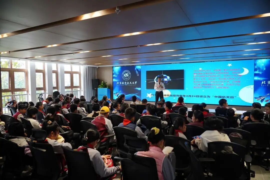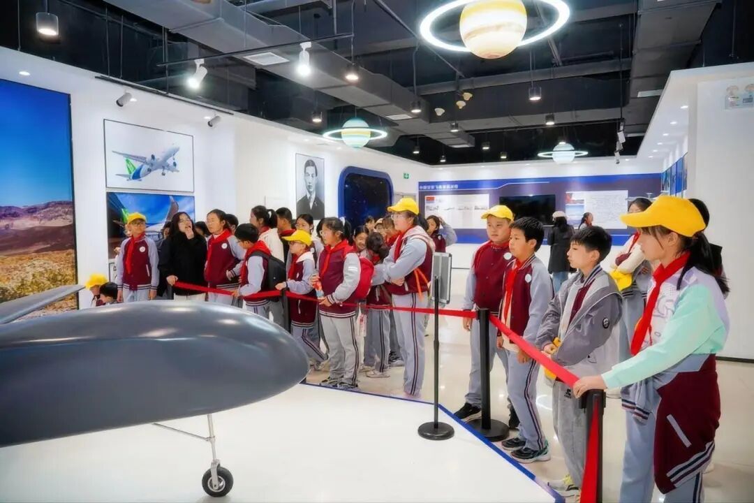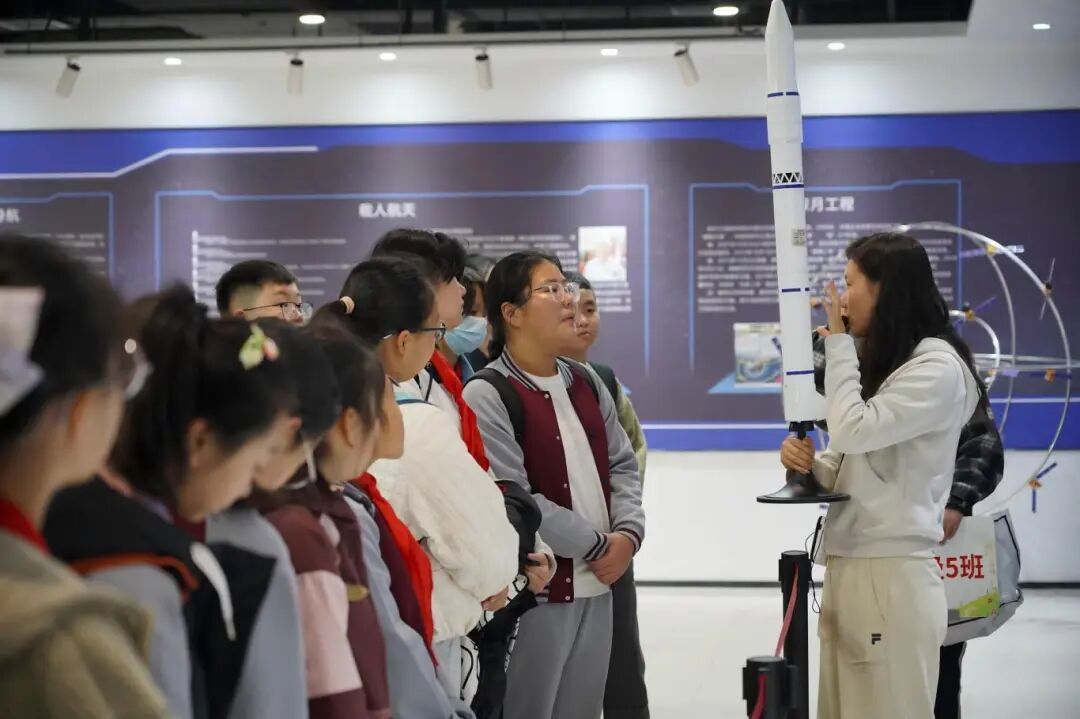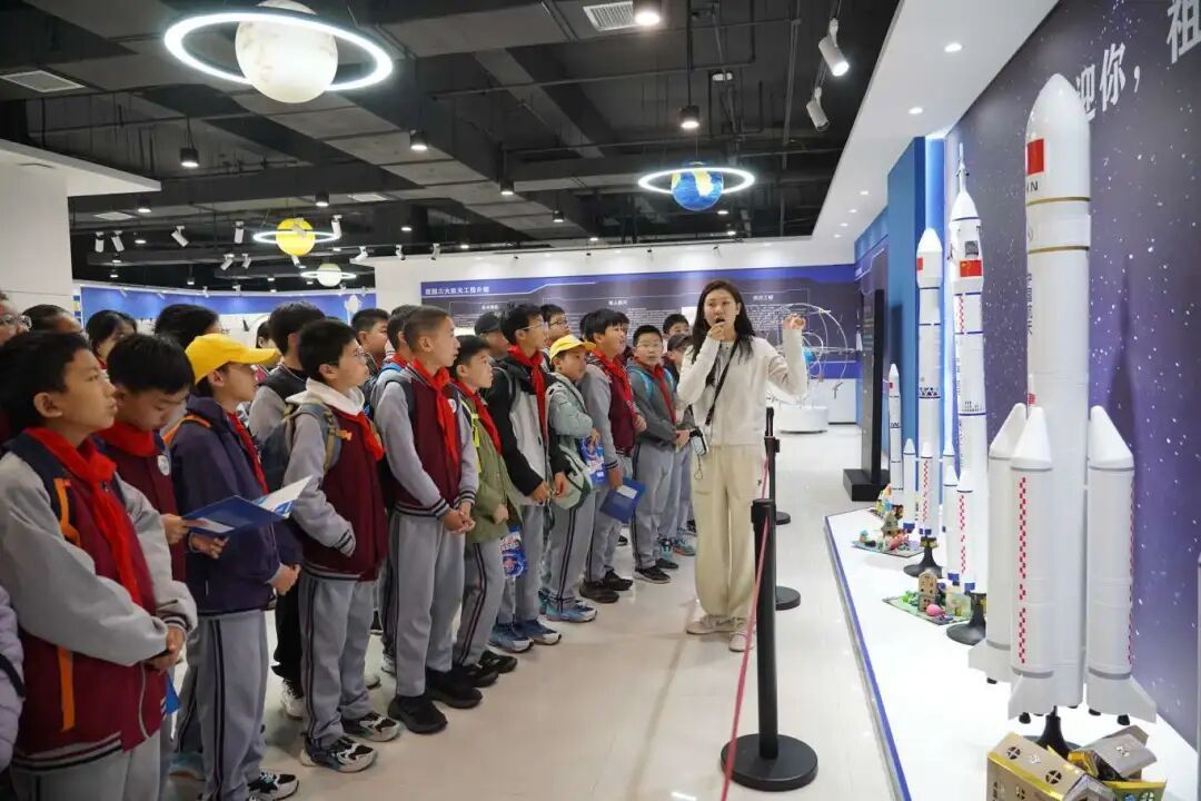 在航空航天基地,更多“航天惊喜”等待着大家。队员们参观“太空家园”心舱模型,触摸航天器部件,了解“生命维持系统”的精密设计,仿佛置身太空;长征系列火箭介绍课上,从火箭的构造到航天工程的发展历程,每一个知识点都让队员们对中国航天事业充满敬佩。
