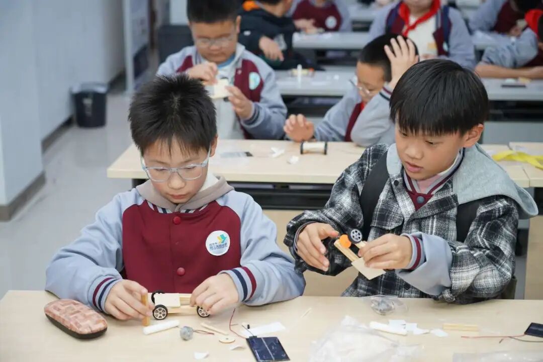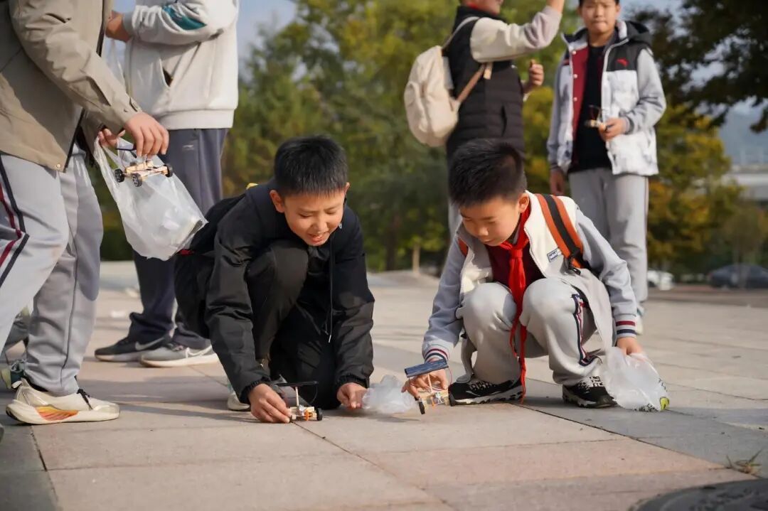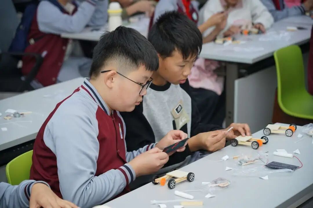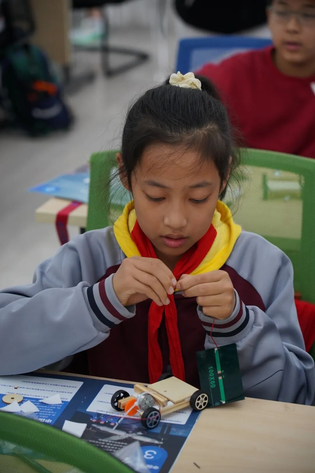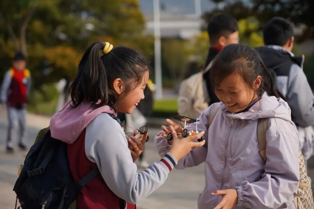 最令人期待的“制作火星车”环节,队员们分组协作,对照说明书使用螺丝刀、扳手组装零件,排查故障、调试结构,当一个个小巧的火星车完成组装时,大家兴奋地展示成果,在实践中提升了动手能力与团队协作力。
