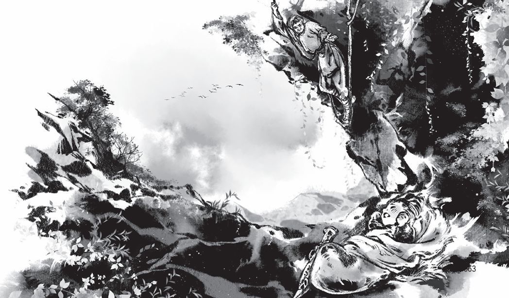 南山先生真的一个人吗?不是这样的,他还有两只小狗。南山先生煮粥的时候,两只小狗在门外等待投喂。南山先生巡山劈柴的时候,两只小狗如影相随。南山先生在月光下沐浴的时候,两只小狗也蹲坐旁边,朝月亮举起爪子——跑一天了,爪子脏了,该洗洗了。