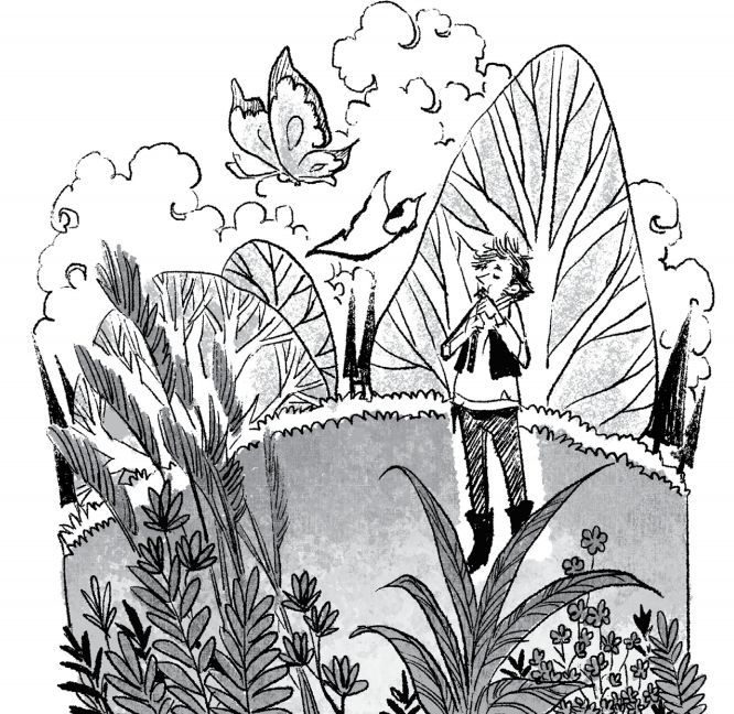 一张叫阿卡的白纸,没能成为书籍里的正文,只做了童书的空白扉页,还带着印刷工人的拇指印。幸运的是,女孩将拇指印画成严肃的猫,物理学教授又在他身上留下满是公式的演算笔记。可一场意外,让阿卡被小偷偷走,历经伪造拼接,辗转漂泊百年,阿卡最终成了流浪汉笛子上的笛膜,他终于在悠扬曲调中明白:真正的自由,只关乎一颗纯粹洁白的心。(图:黑籽黑)