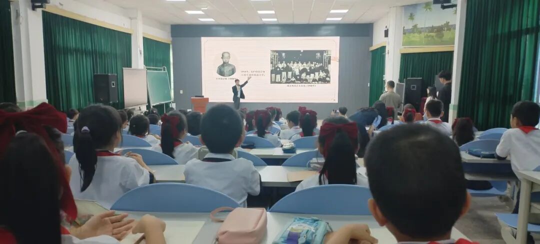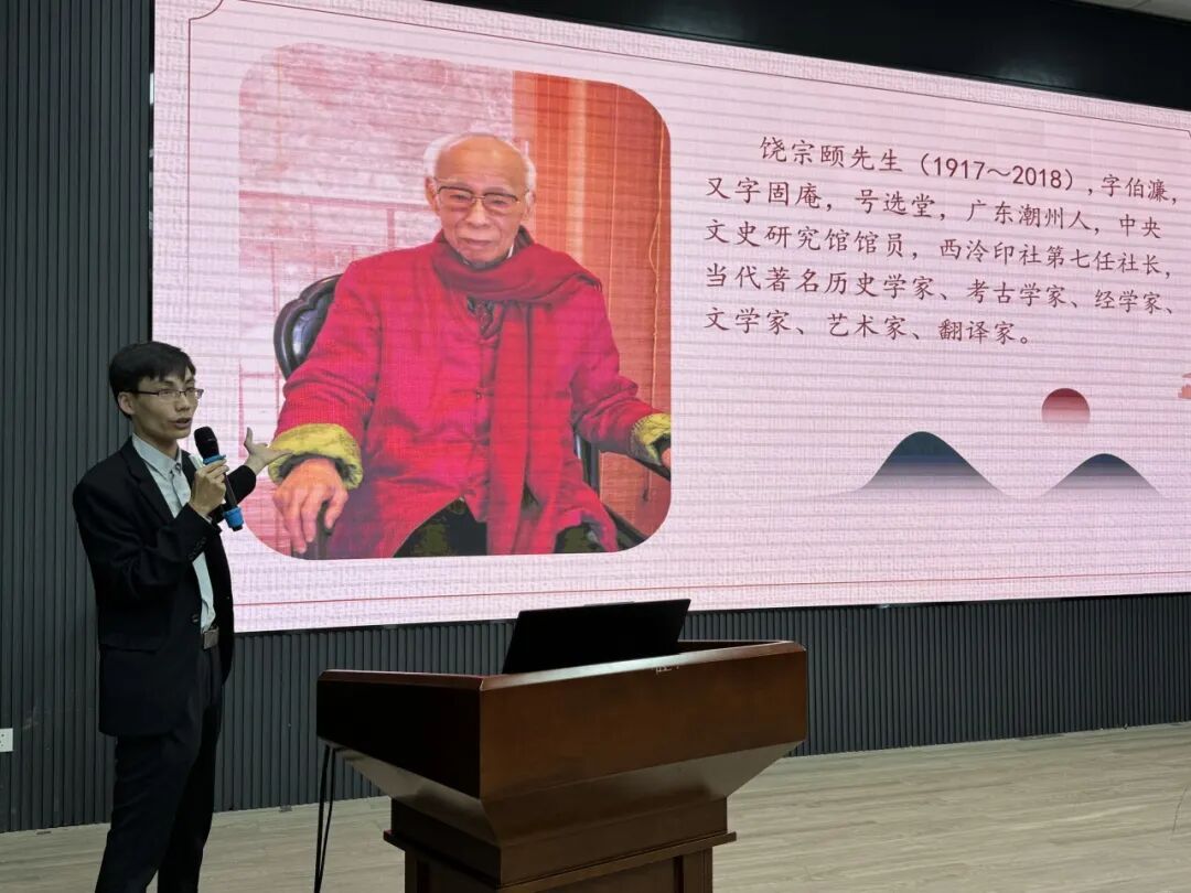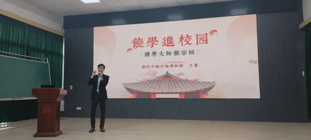 饶学课堂上,潮州市饶宗颐博物馆文博馆员王奋通过图文并茂的课件,将一代国学大师的故事娓娓道来,让学生们对饶宗颐先生学术艺术成就和文化精神有了更深刻的了解。