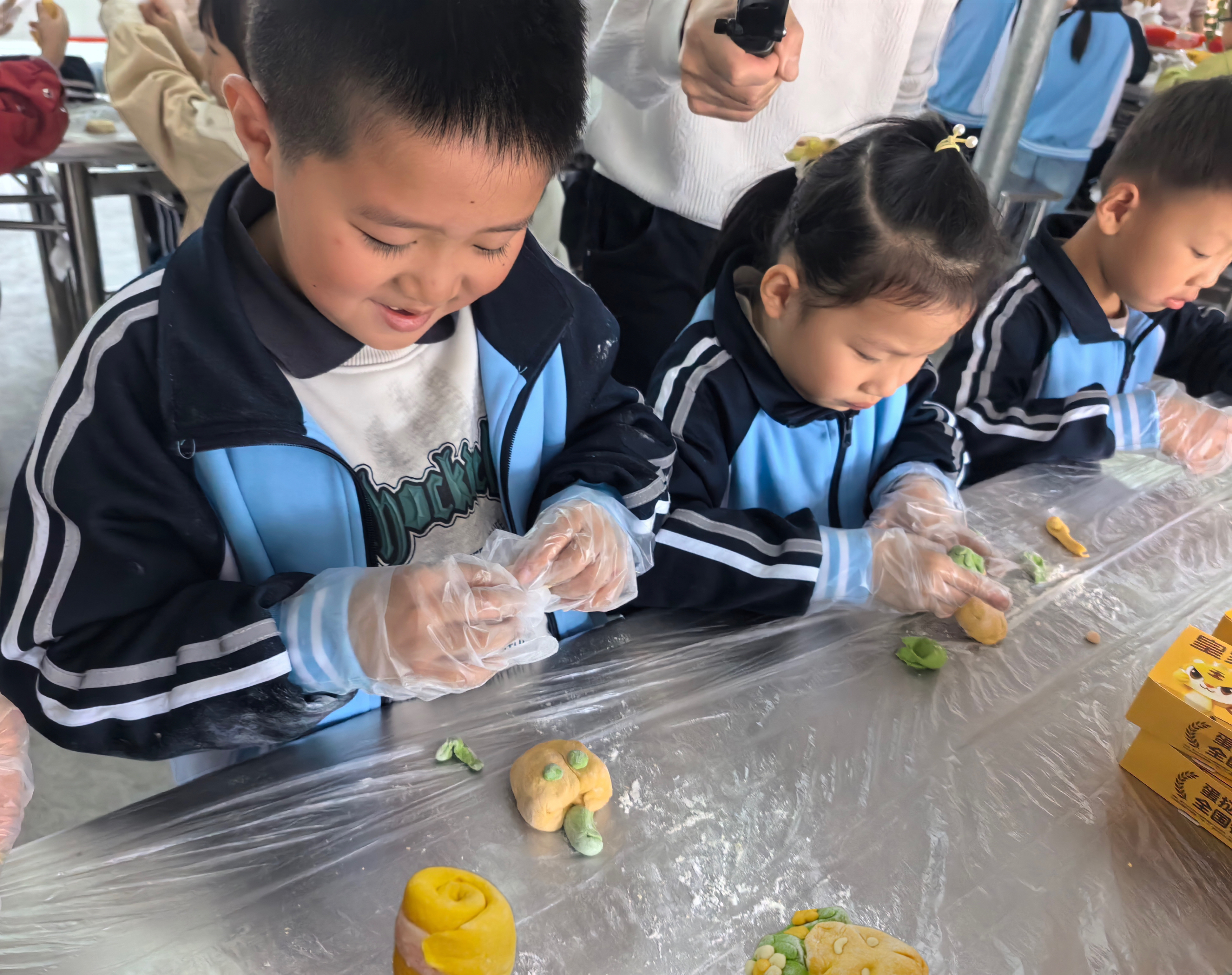 孩子们化身“小小厨师”,在老师和家长指导下亲手制作美食。他们小心翼翼地卷起春卷,揉捏面团,体验制作传统馒头的乐趣;还将南瓜泥与糯米粉混合,搓出一个个圆润可爱的南瓜糯米丸子。最后,大家充分发挥想象力,将各种新鲜水果组合成色彩缤纷、创意十足的水果拼盘。