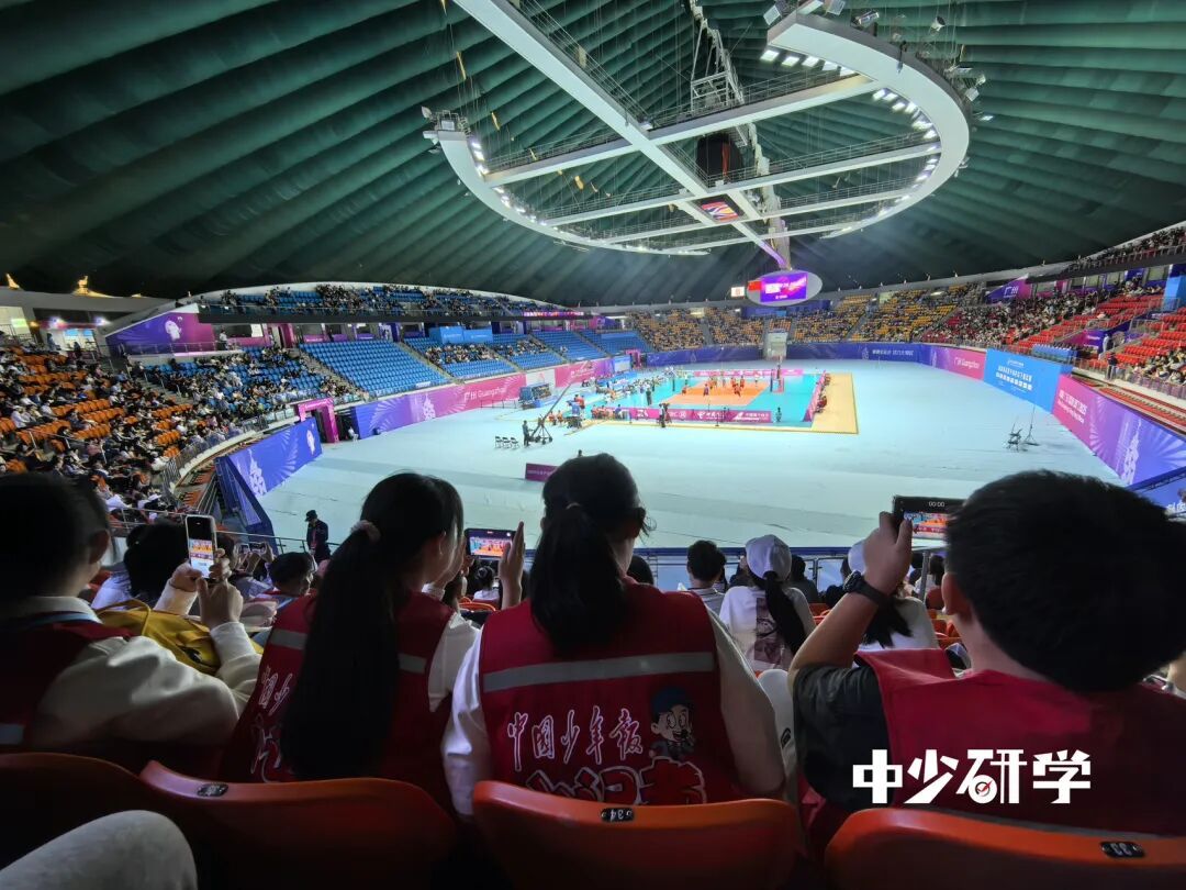 中国少年报·优米官方小记者在十五届全运会男子U18组排球比赛现场观赛