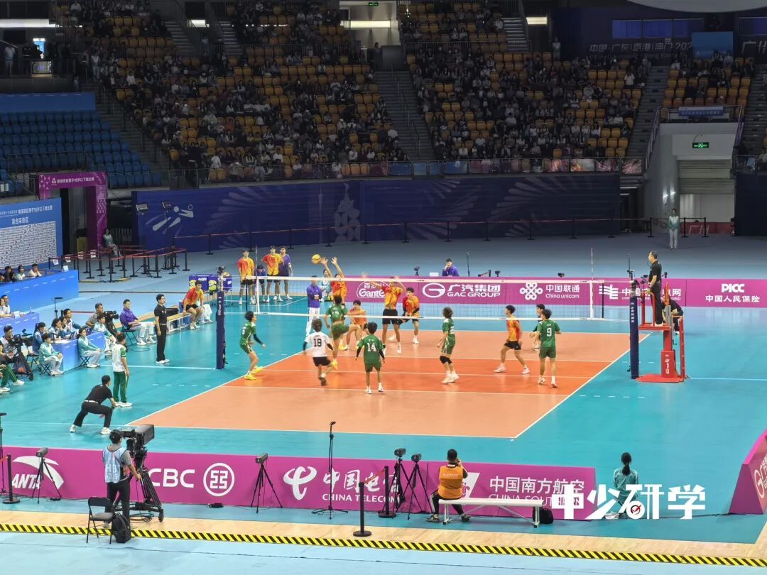 中国少年报·优米官方小记者在十五届全运会男子U18组排球比赛的现场
