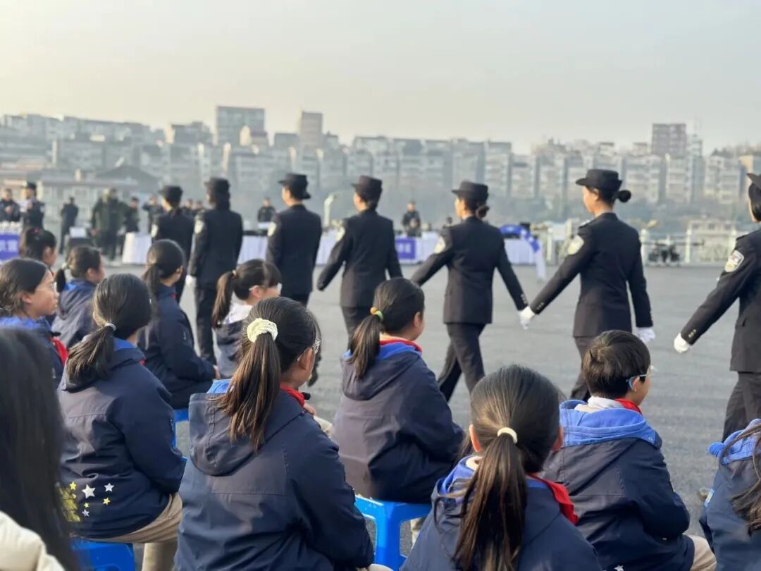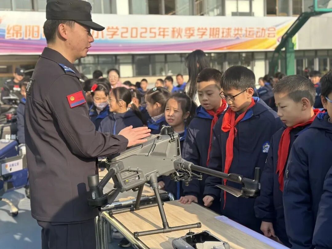 绵阳市公安局科技城新区分局的警察叔叔们带着满满的“安全干货”和酷炫的警用装备,走进了校园。操场上、教室里瞬间变成了生动的安全教育现场,队员们的目光瞬间被整齐列队的警察叔叔和各类装备吸引。