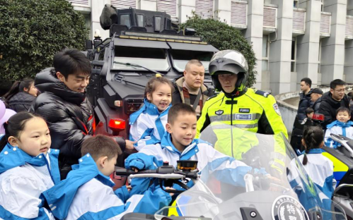 近日,四川省成都市大邑县北街小学的少先队员受邀走进县公安局,参加 “警营开放日”活动,沉浸式解锁一堂兼具仪式感与实践性的“平安成长课”,在摸装备、看演练、学知识的过程中,与“藏蓝铠甲”来了一场温暖邂逅。